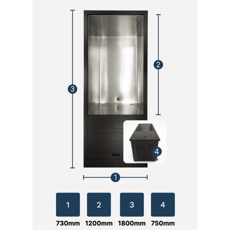 Please check all relevant information about the product (dimensions, technical requirements, power/water connections, space requirements, delivery conditions) before ordering. If you have any questions, we recommend a consultation before purchasing, especially for larger wellness products.