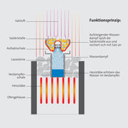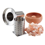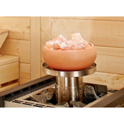 A removable stainless steel cylinder is placed between the sauna stones and filled with about 1 liter of water. Through the heating of the sauna heater, the water evaporates. The resulting steam rises through openings in the vaporizer pot filled with salt stones. Thus, it enriches itself with salt when rinsing the salt stones and distributes evenly in the sauna. The vaporizer pot is made of ceramic and is offered in red or beige colors.